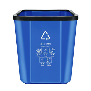 益美得 FH-1241 分类垃圾桶带提手压圈小号办公室酒店客房桶 10L蓝色(可回收物)