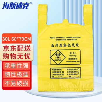 海斯迪克 HKW-103 加厚黄色医疗垃圾袋(50个)背心式塑料袋 手提式 30升60*70cm