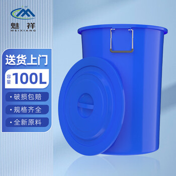 魅祥 大号圆桶塑料水桶 带盖加厚储水桶 酒店厨房工业环卫物业垃圾桶 发酵桶 100升带盖(蓝色)