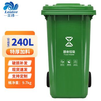兰诗(LAUTEE)YY- 240B 新国标可挂车户外环卫物业商用大号分类垃圾桶 绿色-厨余垃圾240L