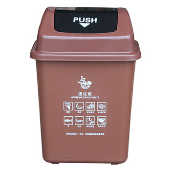 莫恩克 塑料分类翻盖垃圾桶 方型弹盖垃圾桶 大号办公室楼道走廊收纳桶 环卫果皮桶 40L棕色(湿垃圾)