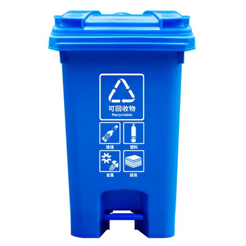 益美得 塑料脚踏分类垃圾桶大号户外脚踩垃圾箱果皮桶带盖 不带轮60L蓝色(可回收物)