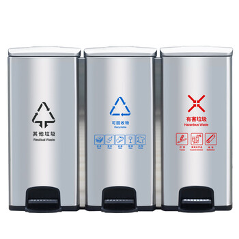 益美得 LD-1007 不锈钢脚踏垃圾桶酒店办公室单位干湿脚踩分类垃圾桶静音带盖 其他+可回收+有害90L