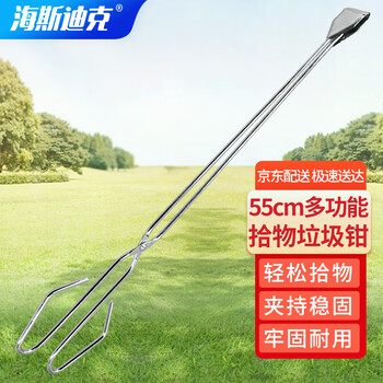 海斯迪克 HKQJ07 不锈钢色垃圾夹 夹拾物器 取物器食物夹 碳夹 环卫垃圾夹 55cm