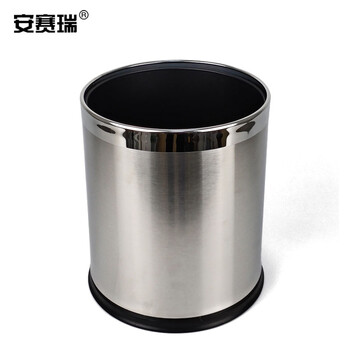 安赛瑞 双层不锈钢垃圾桶 酒店宾馆办公室钢圈垃圾箱 双层砂纹钢 2个装 10L 24021