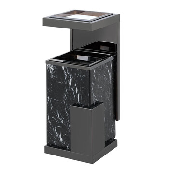 庄太太【黑金黑石】酒店宾馆大厅电梯口不锈钢大理石带烟缸立式垃圾桶