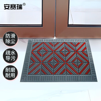 安赛瑞 室外镂空除尘地垫 EVA拼接除尘地垫 拼接式刮泥防滑脚垫 三刷红刷灰底 60×90×2.5cm 23341
