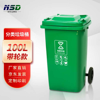 纽仕达/新国标100L带轮分类垃圾桶商用户外环卫室外大号带盖翻盖大容量大垃圾桶/易腐垃圾【可免费印制LOGO】