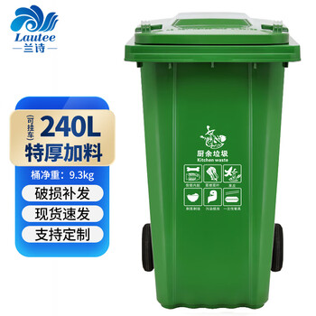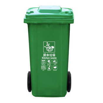 益美得 加厚户外分类垃圾桶酒店大号两轮室外果皮箱 可挂车240L绿色(厨余垃圾)