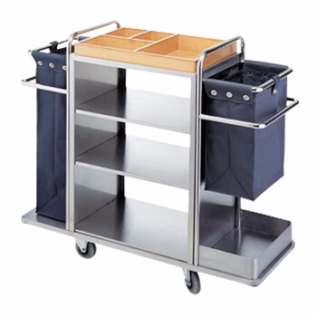 益美得 LK1007 不锈钢布草车酒店服务清洁车加厚收纳车手推车 双通车5寸(整装型)