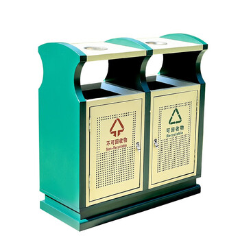 安赛瑞 分类垃圾桶 户外果皮箱 景区公园双桶钢木垃圾桶 环保分类果皮箱 710224