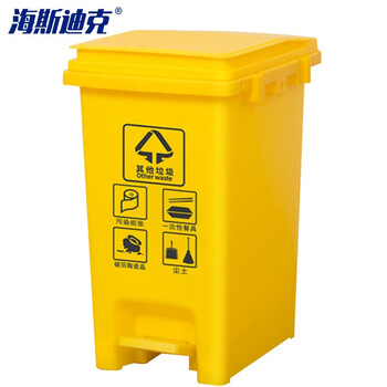 海斯迪克 HKW-190 脚踩垃圾桶 分类连体塑料环卫垃圾箱 黄色20L其他垃圾