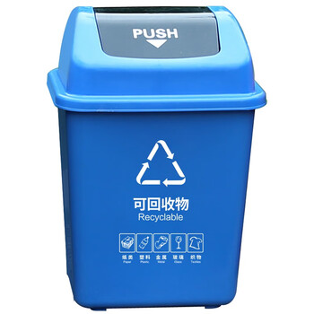 益美得 上海分类垃圾桶大号摇盖干湿垃圾分离垃圾箱果皮桶 40L蓝色(可回收物)