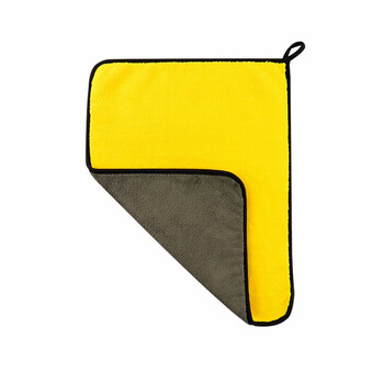 劳保佳 超细纤维加厚洗车毛巾 高密珊瑚绒毛巾 黄灰色 高密款60×30(约100克)