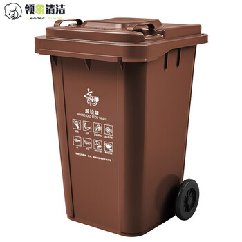 领象 上海分类垃圾桶 加厚户外环卫垃圾桶大号带盖小区物业酒店学校大垃圾桶 棕色240L 湿垃圾挂车款