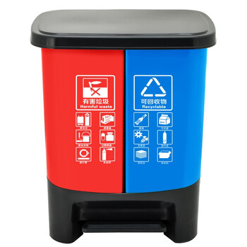 益美得 户外加厚双桶分类垃圾桶商用脚踏大号干湿分离垃圾分类垃圾桶 40L红+蓝