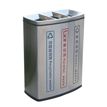 兰诗(LAUTEE)DB6025 带盖翻盖干湿分离分类大号垃圾桶不锈钢户外回收箱 三分类桶GPX218EX