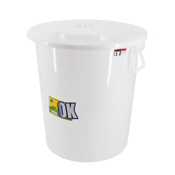 益美得 圆形大号水桶塑料垃圾桶储物桶商用户外带盖工业用大桶 60L白色