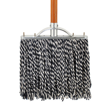 益美得 老式平板拖把棉线排拖尘推拖把木杆墩布 蓝白线30厘米(加固款铁头)