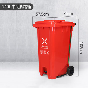 安赛瑞 分类垃圾桶 物业环卫大号垃圾桶 120L 户外商用带盖垃圾桶 有害垃圾 红色 710178