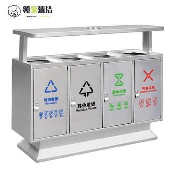 领象 不锈钢户外垃圾桶果皮箱连体分类垃圾桶小区公园市政环卫烟灰柱灭烟桶 不锈钢 四分类