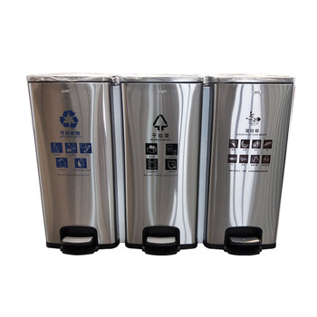 南 GPX-S03 三联分类环保垃圾桶 分类脚踏桶 果皮桶 干垃圾湿垃圾分类不锈钢垃圾箱