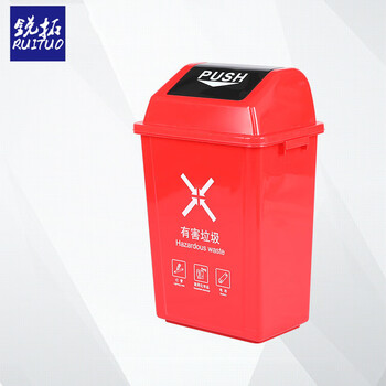 锐拓垃圾分类垃圾桶带盖环卫大号商用四色学校公司政府摇盖垃圾箱60L北京红色有害垃圾