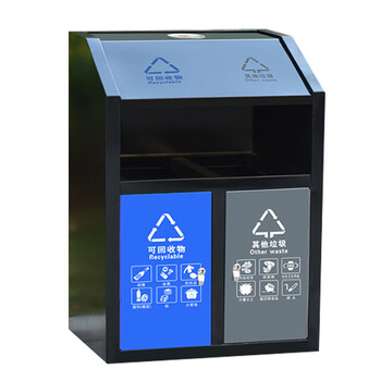 者也 户外分类垃圾桶不锈钢果皮箱室外公园小区物业环卫垃圾箱大号商用 G2027【两分类】镀锌喷塑