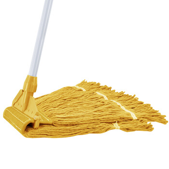 益美得 铝杆四色分类棉线蜡拖商用办公吸水拖把地拖墩布棉纱拖把 卡扣款黄色