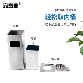 安赛瑞 不锈钢方形垃圾桶 酒店商场室外立式烟灰桶 座地果皮箱灭烟桶15L 24438