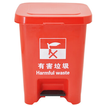 益美得 脚踏式分类垃圾桶小号脚踩带盖酒店垃圾桶 脚踏12L红色(有害垃圾)