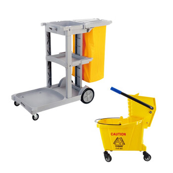 莫恩克 清洁车 柞水桶手推保洁杂物车 多功能物业拖把桶 浅灰无盖清洁车+榨水桶