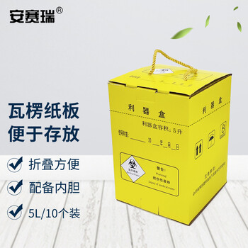 安赛瑞 一次性纸质利器盒 5L(10个装) 医院诊所实验室纸质垃圾桶 配内胆27015