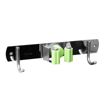 庄太太【单夹2钩 打孔粘胶两用】拖把挂钩免打孔强力壁挂卫生间挂扫把拖布夹不锈钢