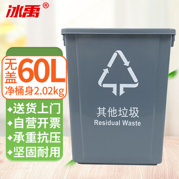 冰禹 BY-2029 塑料长方形垃圾桶 环保户外翻盖垃圾桶 60L无盖 灰色 其他垃圾