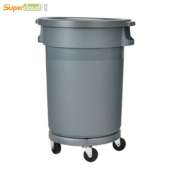 舒蔻(Supercloud)室内车间工业加厚圆形大号垃圾桶 餐厅酒店商用厨房塑料带盖户外环卫垃圾桶 120L带轮子