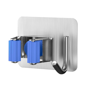 益美得 LSL33247 304不锈钢免打孔拖把挂钩卫生间强力无痕加厚拖把夹 方形带钩蓝色(1个装)