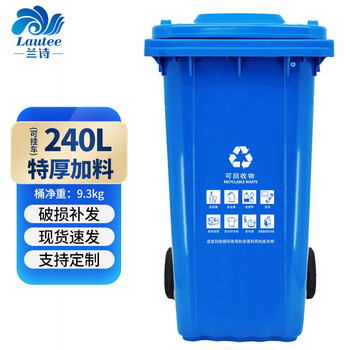 兰诗(LAUTEE)240D-4 大号户外垃圾桶 物业环卫商用带盖可挂车分类垃圾桶 可定制 240L蓝色可回收物