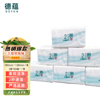 德蕴抽纸软抽三层150抽卫生面巾抽纸巾(180*128 3层150抽*8包) 10提/组