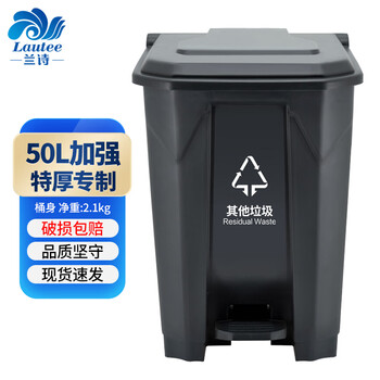 兰诗(LAUTEE)YJ-50 新国标脚踏垃圾桶 物业环卫分类垃圾桶 50L-灰色其他垃圾