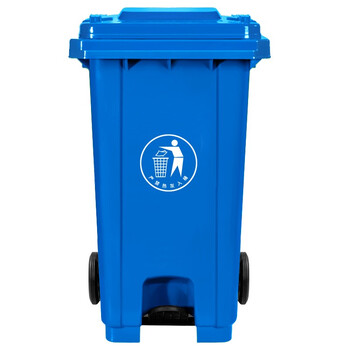 益美得 脚踏户外垃圾桶大号商用环卫垃圾箱果皮桶街道小区街道带轮 240L蓝色