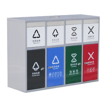 伏兴 不锈钢四分类垃圾桶 户外垃圾桶环卫分类垃圾箱果皮箱定做 2个起订 连体带盖1.3*0.4*1米