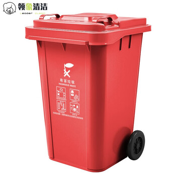 领象 上海分类垃圾桶 加厚户外环卫垃圾桶大号带盖小区物业酒店学校大垃圾桶 红色240L 有害垃圾挂车款