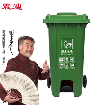 震迪 塑料垃圾桶 120L分类款(厨余垃圾)中间脚踩绿色塑料垃圾分类垃圾桶垃圾桶带轮可定制 KT543景区环卫