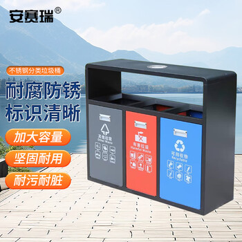 安赛瑞 分类垃圾桶 户外连体市政环卫果皮箱 三分类物业街道公园景区垃圾箱 镀锌板 710217