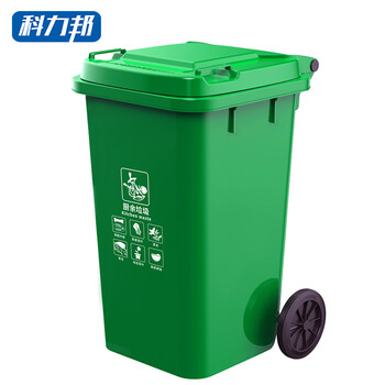 科力邦(Kelibang) 户外垃圾桶 大号加厚100L分类垃圾桶带盖市政物业商用环卫垃圾桶 绿色 KB1048 厨余垃圾