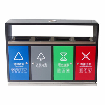益美得 LK1045 户外多分类垃圾桶回收箱二三四分类垃圾箱环卫果皮箱 烤漆黑四分类不锈钢投口单组