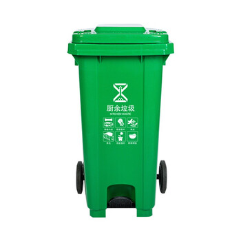 JN JIENBANGONG 垃圾桶 大号带盖户外分类垃圾桶240升加厚挂车垃圾桶中间脚踏型 绿色厨余垃圾