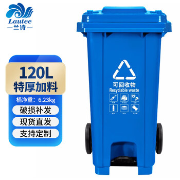 兰诗(LAUTEE)LJT2214 蓝色分类脚踏120L垃圾桶 大号垃圾桶