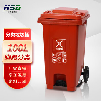 纽仕达/新国标100L脚踏带轮分类垃圾桶商用户外环卫室外大号带盖大垃圾桶/有害垃圾【可免费印制LOGO】